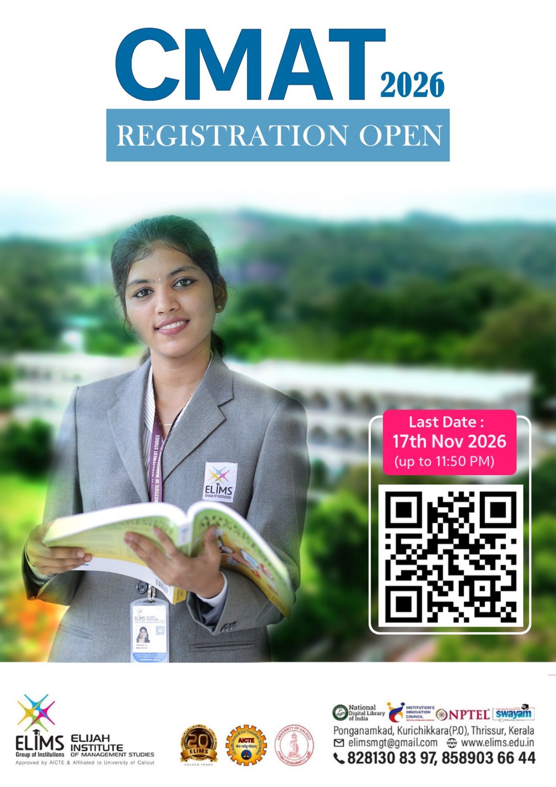 CMAT Registration started….Last date November 17 Gallery CMAT Registration started….Last date November 17 Announcement CMAT Registration started….Last date November 17 Registration for CMAT [...] By ELIMS Admin|2025-11-01T15:04:12+05:30October 31, 2025|Announcement|Comments Off on CMAT Registration started….Last date November 17 Read More