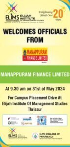 Campus Placement Drive At 9.30am On 31st May 2024 At ELIMS
